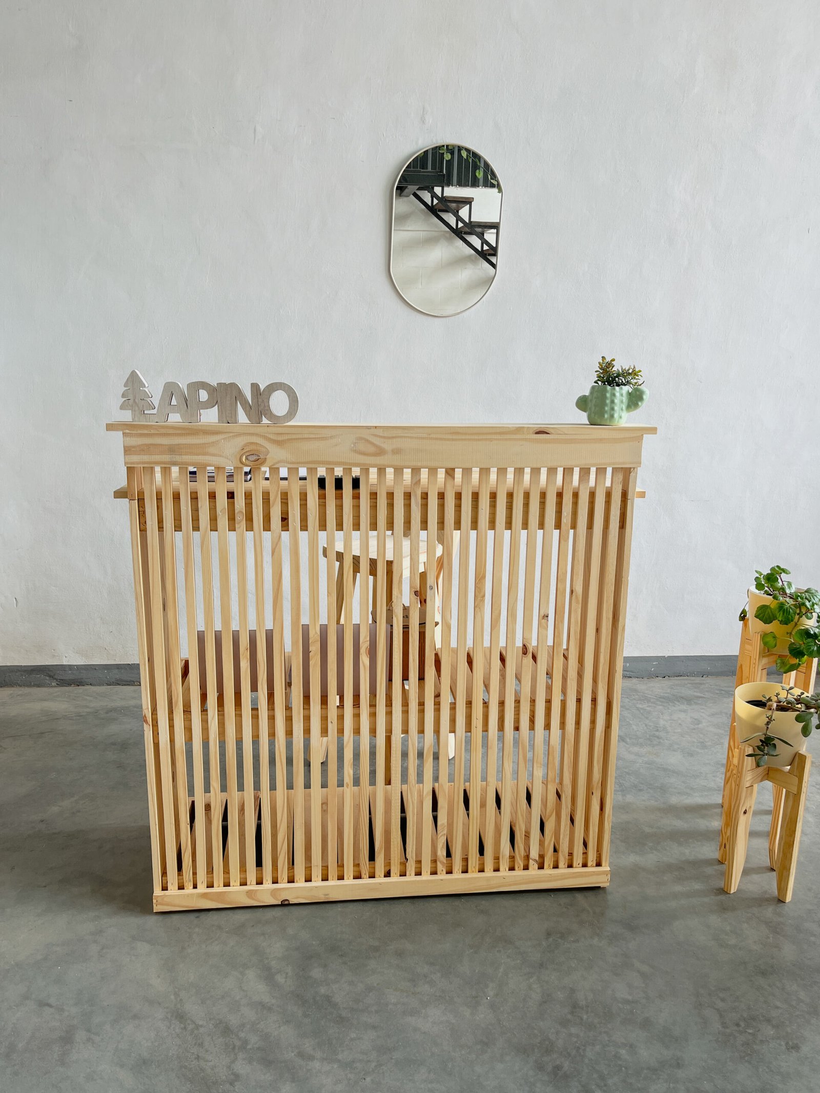 Estilo y funcionalidad: Este mostrador aporta calidez y profesionalismo al espacio. Su diseño varillado lo convierte en un punto focal atractivo, mientras que la madera de pino ofrece una estética natural que combina con estilos rústicos, nórdicos o minimalistas.