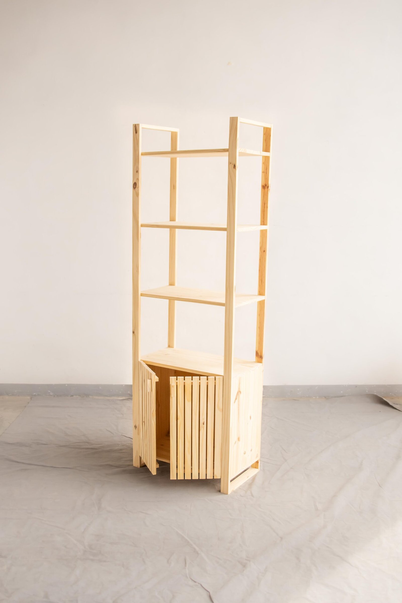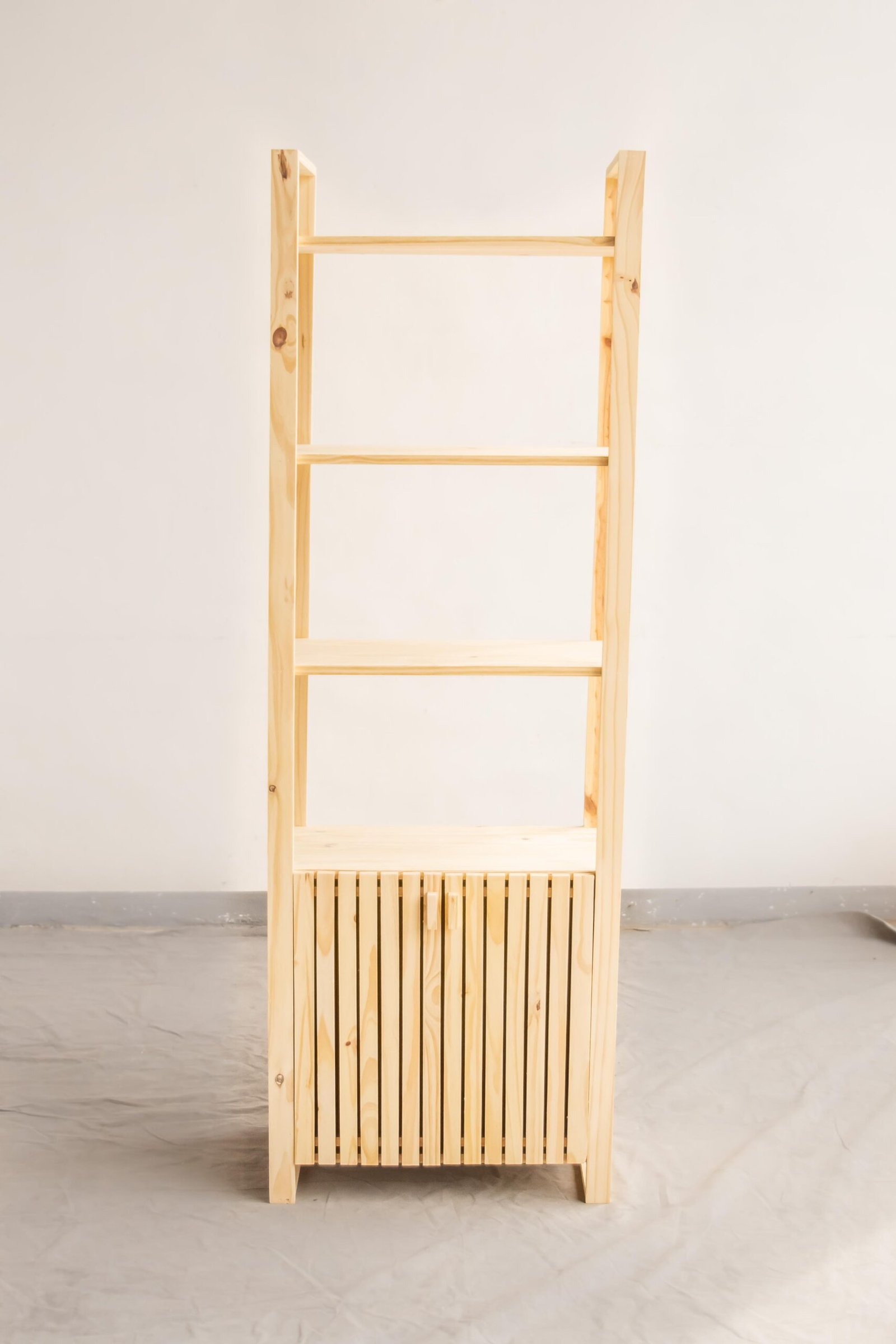 Esta biblioteca varillada de pino macizo combina diseño moderno y funcionalidad. Sus estantes abiertos permiten exhibir libros, adornos y objetos decorativos, mientras que el módulo inferior con puertas varilladas ofrece espacio cerrado para guardar lo que necesites. Su estructura inclinada le da un estilo único y liviano, ideal para livings, estudios o dormitorios. El acabado natural permite personalizarla con barniz o pintura según tu estilo.