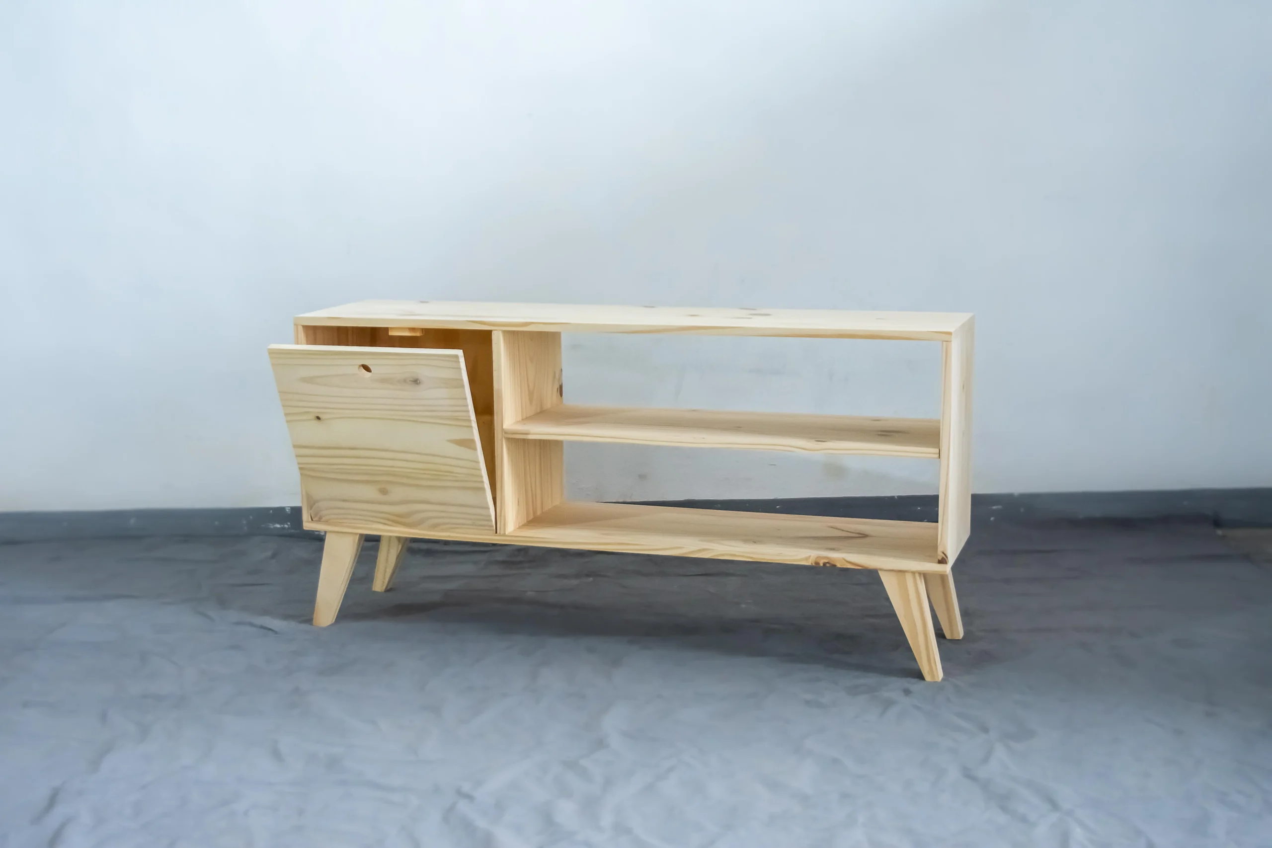 El rack retro de 1,20 metros con una puerta es una combinación perfecta de estilo y funcionalidad. Su diseño elegante y minimalista, con patas angulares características, aporta un toque vintage a cualquier ambiente. La puerta abatible oculta un espacio de almacenamiento práctico, mientras que los estantes abiertos ofrecen lugar para exhibir decoraciones, libros o dispositivos electrónicos. Ideal para organizar y decorar tu sala de estar con un mueble versátil y de diseño distintivo.